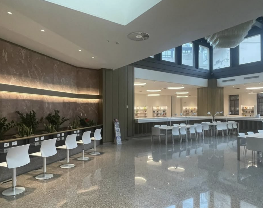 Cuore del nuovo Polo è la Sala Lettura, pensata per rispondere alle esigenze della comunità studentesca e valorizzare al contempo l’identità storica dell’edificio. Lo spazio è dotato di: